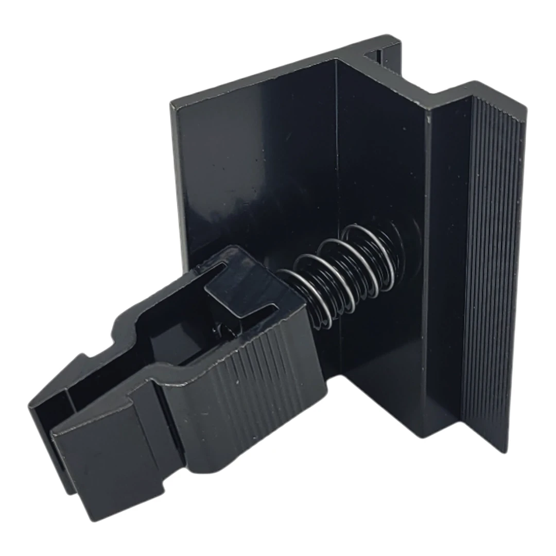 Klema boczna (końcowa) z systemem KLIK do mocowania modułów fotowoltaicznych o grubości ramki 30 mm. Stosowana na końcach rzędów paneli — zarówno na dachach płaskich, jak i spadzistych.