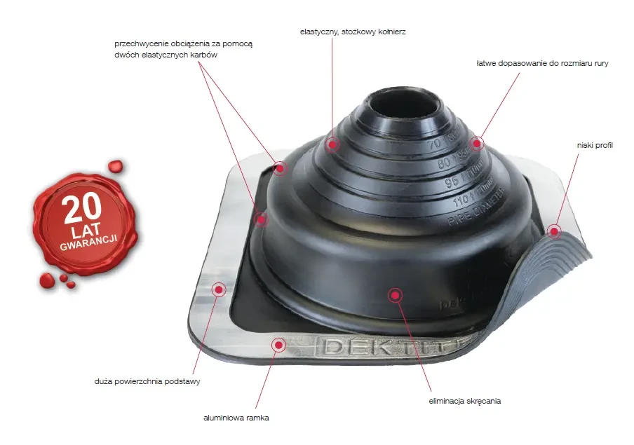 Odpowiedni do przejść kablowych gwarantuje profesjonalne uszczelnienie na dachach i fasadach. Elastyczny korpus manszety uszczelniającej kompensuje termiczne zmiany długości.