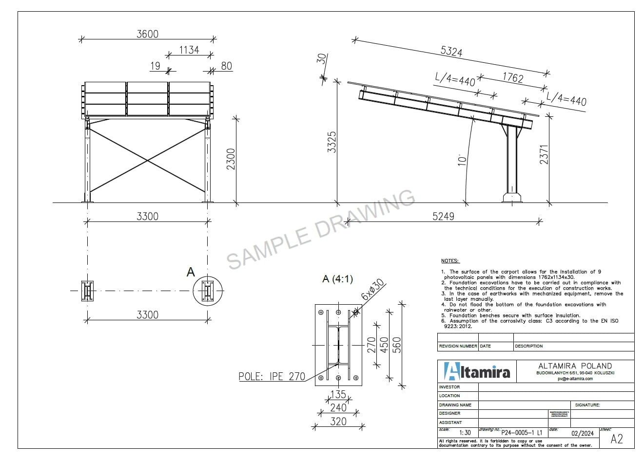 - Oferta dotyczy samej konstrukcji bez paneli fotowoltaicznych, odbojnic i systemu uszczelniającego oraz orynnowania