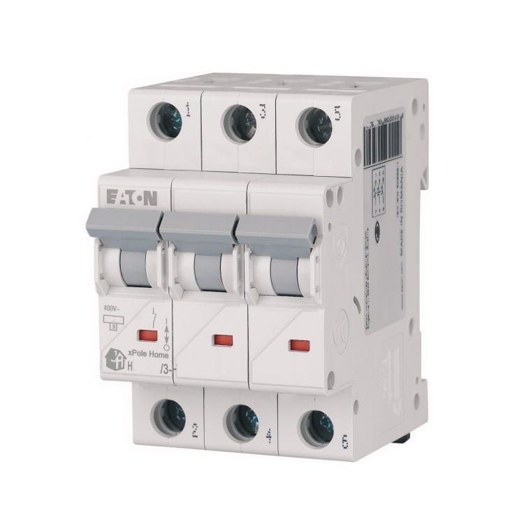 Wyłącznik nadprądowy C 63A 3P 6kA HN-C63/3 xPole Home 194897 EATON chroni instalację elektryczną przed przeciążeniem i zwarciem.